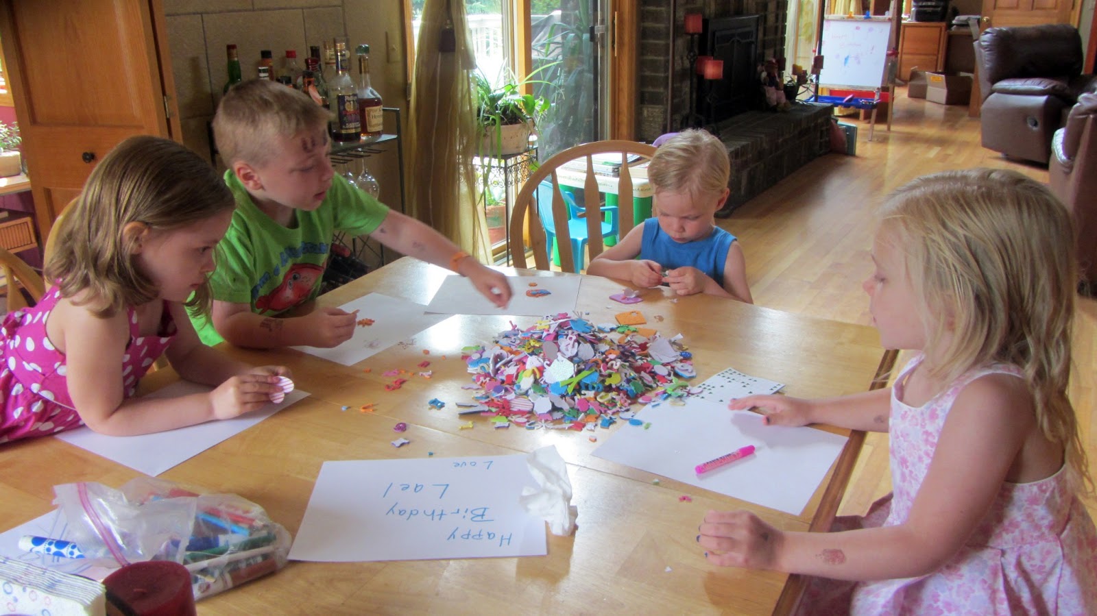 The morning of the sixth, making cards for Lael's first birthday party.